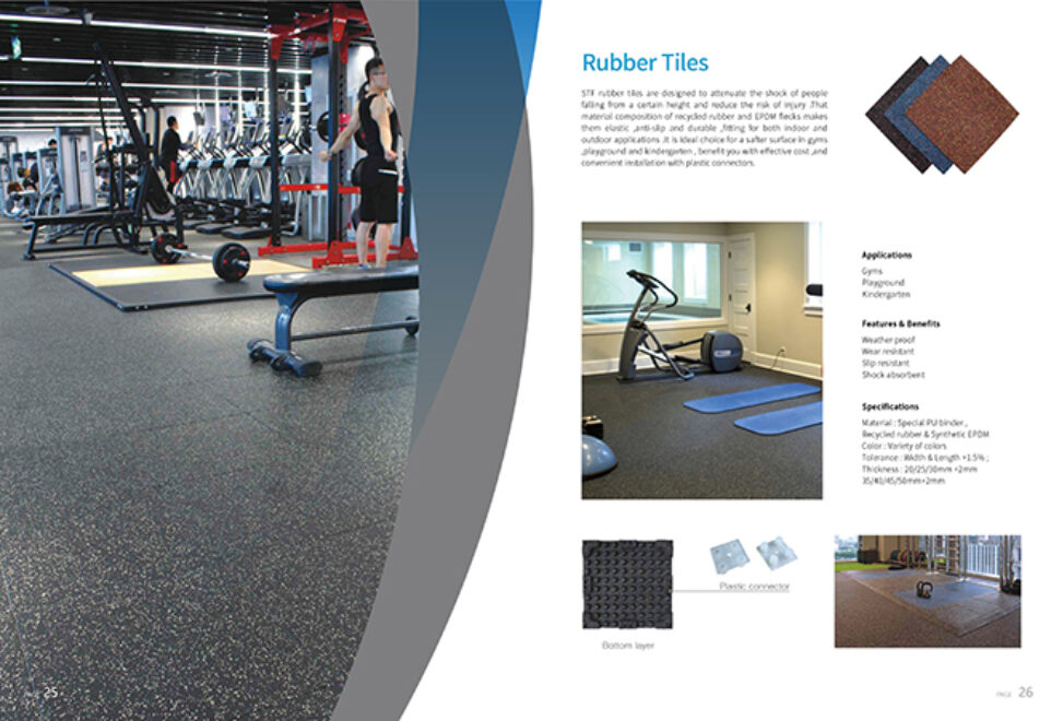 Rubber roll offers excellent underfoot comfort, absorbs walking noise and the shock of training impact. Being made of recycled tire rubber and synthetic EPDM, it is durable and resilient enough to fit for the heavy use in gym room and commercial places. Its supplied in both roll and interlocking ,with various colors available.