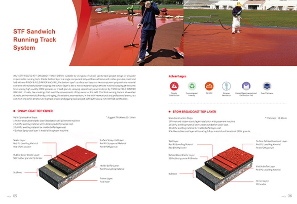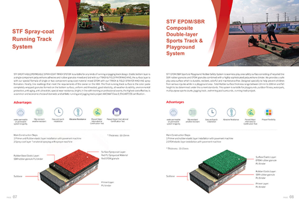 1.  Structural Spray-coat System Running Track/Jogging Track (Permeable or Sealed) Thickness :13~15mm